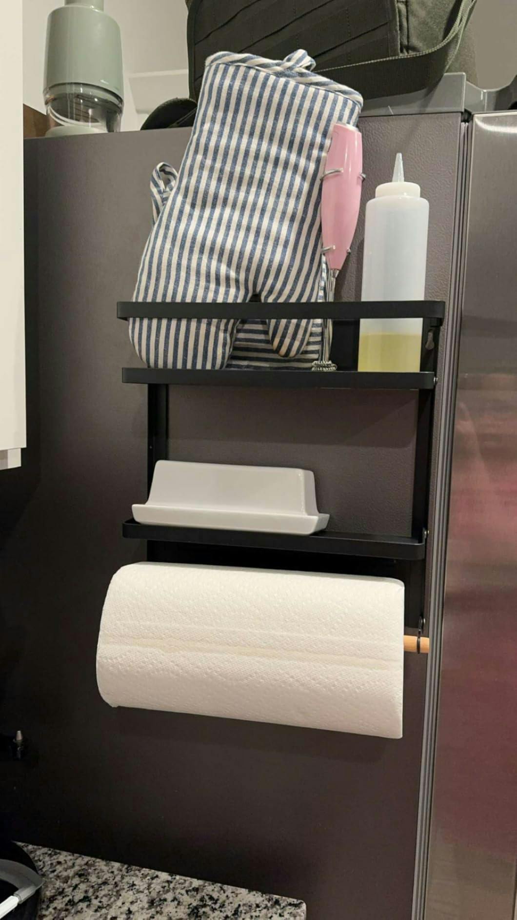 Made from durable, rust-resistant steel, it’s built to handle daily use — from utensils and spice jars to cutting boards, towels, and more. The minimalist design blends seamlessly into any modern kitchen, giving your space a clean, stylish, and uncluttered look.